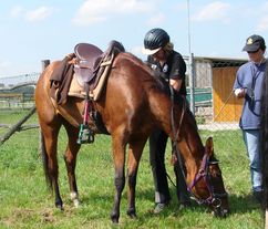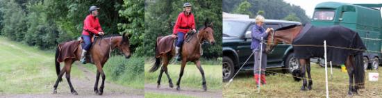 Eifel-Distanz - 2 x 40 km. Dafür gab es von Dr. Michael Zanger für die Schotterwege Alu St Croix perfekt genagelt. Levana lief 2 Tage wie ein Glöckchen mit durchweg Bestnoten. Aufgrund des ungewohnten Geläufs mit teils starken Steigungen war das nicht so selbstverständlich zu erwarten! Sie findet großen Gefallen am Distanzsport. Sie läuft zwar öfter mit anderen deutschen Warmblütern, aber noch nie mit einem Holsteiner.