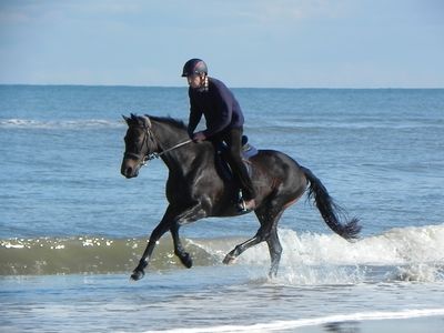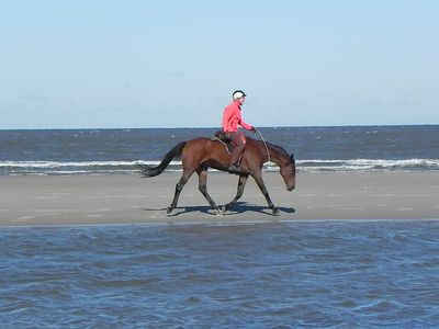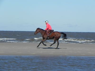 Urlaub muss auch sein: Norderney, Reitschule Junkmann auf einem schönen Weidestück hinter der Aussichtsdüne. Jeden Tag Ritte am Strand, auch bis zum Inselende, sind gemütlich und trotzdem gutes Training