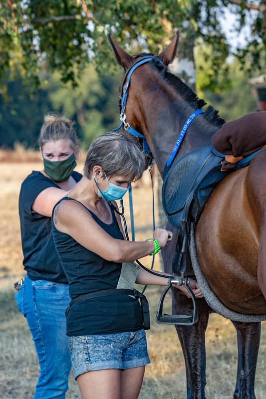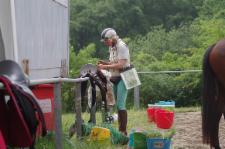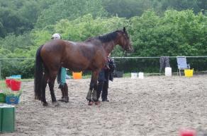 Levana startete mit geklebten Alu St Croix Eisen, Choco mit EB Glove vorn und Renegades hinten. Reitzeit fast 4 Stunden, allerdings bei großer Hitze. Deshalb ließen wir es langsam angehen und kamen mit guten Pulswerten durch die Tierarztkontrollen.