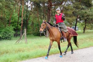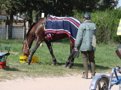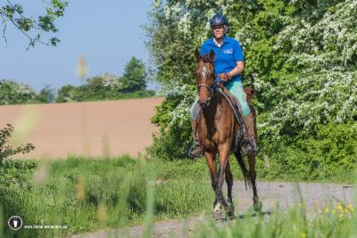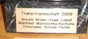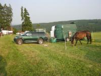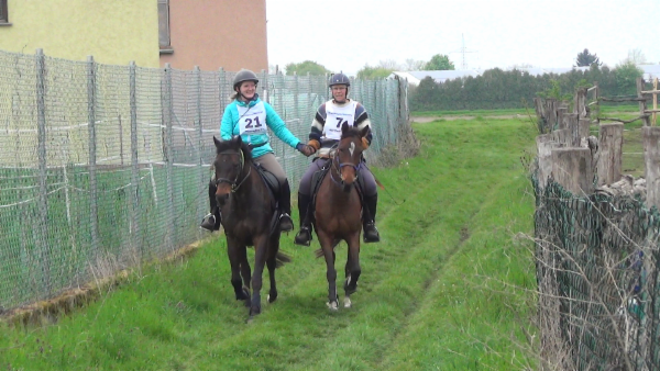 Fast das ganze Wochenende wurden wir von einem Wind vorwärts gedrückt oder gebremst, den man eigentlich an der Nordsee erwartet. Nur kurz wurden wir (ausgerechnet neben dem Friedhof) von Blitz und Donner begleitet. Besonders schönes Bonbon: Mit der Mannschaftswertung wurden wir auch Sieger. Unsere Mitstreiter Traberhengst Hawk Lobell mit Annett Müller und Traberstute Itschuna mit Manfred Wanitschka haben Spitzenleistungen erbracht. Nun steht bei uns zu Hause ein Wanderpokal von fast einem halben Meter und wartet auf eine gravierte Plakette, um dann den Rest des Jahres bei Annett oder Manfred zu glänzen.