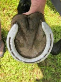 Gestartet waren wir mit einem Duplo-Klebebeschlag, 2 Wochen alt, bearbeitet auf einem Lehrgang. Die linke Seite sitzt noch gut, die rechte Seite hat sich am Strand bzw. im Wald verabschiedet. Aber Choco wäre kein echtes Les-Dannes-Pferd, wenn ihr das was ausmachen würde. Problemlos erreichten wir auch mit 2 Platten das Ziel.
