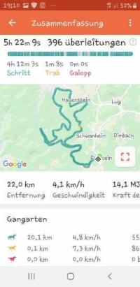 ... ist nicht gut gelaufen. Penthi war bei km 44 lahm. Das ist wohl eine größere Baustelle, die seit dem Decken im Mai nur bei längeren Strecken auftritt.