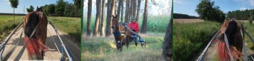 29. August 2009 - Deutsche Meisterschaft Distanzfahren - nicht gewagt zu hoffen, aber wir waren auf dem Treppchen! Penthi ist mit beständigen Rundenzeiten von rund 1:35 h für 25 km auf den 3. Platz getrabt und galoppiert. Die Strecke war wunderbar flüssig zu fahren. Wir haben auch ein neues Atomkraftwerk kennen gelernt an der Weser. Besonders schön und hilfreich für das Pferd: die Wasserstellen waren gut verteilt und sehr ansprechend für die Pferde aufgebaut. Große Bottiche, randvoll mit klarem, frischem Wasser luden regelrecht ein, den Durst zu stillen. Der Sulky lief leicht und leise, die Polar-Technik ging einigermaßen, also verbesserungswürdig.