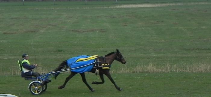 Bockt sie oder bockt sie nicht? - Flottes Tempo nach dem Start 2. Runde im Galopp mit Bremsendecke